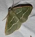 The wingspan is 27–40 mm. The forma fasciaria has a rust-red leaf colour, the forma prasinaria has green coloured wings. Both have on the front wings two slightly irregular curved, thin transverse bands, the midfield thus closed has usually a slightly darker colour. These bands are pale whitish coloured in the rust-red form, in the green form the colouring varies from pale whitish to beige to light brown. In addition in the green form the front edge of the front wing (costa) is weakly coloured in the same shade, the outer edge of both pairs of wings is fringed in this colour. The hindwings are usually somewhat lighter in colour and have a more or less clear, pale cross line in the second half of the wing. In addition to the two main forms, there are other colour variants with different shades of green or plain brown.
