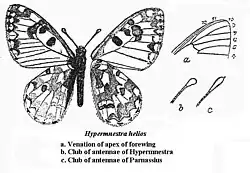 Hypermnestra helios is a species of swallowtail butterfly belonging to the Parnassinae family and is the sole member of the genus Hypermnestra. It is found in Iran, Afghanistan, Pakistan, Turkmenistan, Kyrgyzstan, Tajikistan, and Uzbekistan. It is locally common in desert habitats.