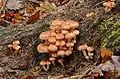 In Pennsylvania, New Jersey, and West Virginia they are found in dense clusters on stumps and roots from October until long after frosts.[5]