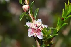 Hypocalymma serrulatum commonly known as early myrtle,[2] is a species of flowering in the myrtle family Myrtaceae, and is endemic to the south-west of Western Australia. It is an erect shrub, with linear leaves, and white or pink flowers with 40 to 55 stamens.