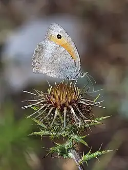 Hyponephele lupina, the Oriental meadow brown or branded meadowbrown, is a butterfly of the family Nymphalidae. It is found in North Africa, south western Europe, southern Russia, Asia Minor, southern Siberia, Middle Asia, Iran and from Baluchistan to Nepal.Seitz describes it thus- lupinus Costa (47 e) is rather considerably larger than the forms [of Epinepele] so far named; the rusty yellow on the underside of the forewing is brighter, the underside of the hindwing strongly speckled. Southern Italy, Greece.[1]