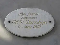 On the facade of No. 10 is a plaque that commemorates that the composer Hans Christian Lumbye was born at the site on 2 May 1810.[1]