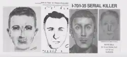 Based on witness testimonies, police strongly believe the murder weapon may have been an Intratec Scorpion pistol or an Erma Werke ET22 pistol.[6][7] They have not, however, been able to rule out any other .22-caliber firearm models.[6] The ammunition used in the killings was .22-caliber CCI copper-clad lead bullets.[6][7] The casings of the cartridges showed traces of jeweler's rouge.[6] Midwest authorities linked the killer to the shootings in Texas in 1994, but Texas authorities were not convinced of a connection as different guns were used in each spree.[1] Based on witness descriptions, investigators were able to produce two composite sketches of the killer and a physical description of the suspect. The I-70 killer was described as being a thin white man in his twenties or thirties, 5'7"-5'9" (1.70-1.75 m) tall, with lazy eyelids and sandy blond or reddish hair in 1992.[1][6][7] During the initial investigation, two individuals were investigated and eliminated as suspects;[3]