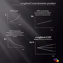 This can be understood by a comparison of GDP growth, the generation of real values and a weighted GDP.