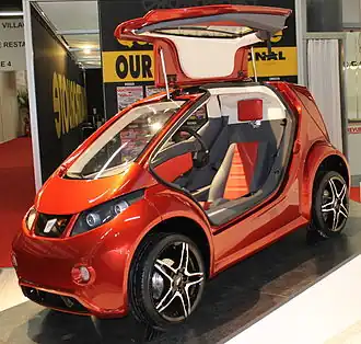 ![]() The electric one-seater "Colibri" from Jena, Germany, as it was presented at the Geneva Motor Show in 2013 | |