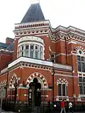 In November 2010, the organization became interested in the old HSBC bank located on Granby Street. The property's central location and 15,000 square feet of space offered the temple room to grow and establish itself as a cornerstone of the community. After being on the market for five years, the bank accepted the organization's original offer of £750,000 in May 2011.[5] During the purchase process, the organization learned that the building was declared a Grade II listed building[6] and required major renovations for the roof, heating, and lighting systems. Along with 11 others building in Leicestershire, English Heritage added the building to a national 'at risk' list, stating that the former HSBC bank in Granby Street desperately needs repairs to save it from falling into ruin.[7] With an estimated renovation cost of two million pounds, the community renegotiated the purchase price to £350,000 with the promise of restoring the historic structure. Funding for the building's purchase was donated to the organization by a London-based family.[5]