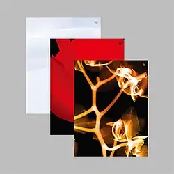 (G)I-dle released three physical album versions for I Burn. In Winter version (寒), the group showed a cold and lonely winter atmosphere wearing white dresses in a space full of antique props, lace fabrics, and lit candles.[42] In Flower version (花), the group showed in dresses with colourful patterns that contrast with the cold blue background.[43] In Fire version (火), the group shows their charms through shaking images that expressed as the fire is spreading while holding props reminiscent of a blazing flame in the pitch-black darkness and emit vivid light.[44] Every version of the EP contains a sleeve, a booklet, a lyric paper, a CD, a CD package, a mini-poster, a postcard with a message on the card, a photo card, a lucky card and a sticker paper.[45][46]