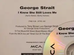 "I Know She Still Loves Me" is a song written by Aaron Barker and Monty Holmes, and recorded by American country music artist George Strait. It was released in December 1995 as the second and final single from his box set Strait Out of the Box. The song reached number 5 on the Billboard Hot Country Singles & Tracks chart in March 1996.[2]