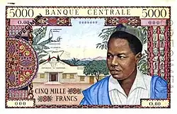 1961 specimen banknote of Cameroon from the Salem collection showing president Ahmadou Ahidjo.[3]