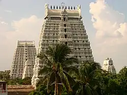 Iconography of Shiva temples in Tamil Nadu is governed by the Shaiva Agamas (IAST:Āgama) that revere the ultimate reality as the Hindu deity, Shiva. Āgama (Sanskrit: आगम, Tamil:ஆகமம்) in the Hindu religious context means a traditional doctrine or system which commands faith.[1] Temple worship according to Āgamic rules can be said to have started during the Pallava dynasty (551-901 A.D.) in South India, but they were fully under establishment during the Chola dynasty (848-1279 A.D.)[2] The temples during the Chola period expanded to Sri Lanka and islands in South East Asia. The temple complex was expanding with niches for various deities on the stipulated sides of the sanctum. Lingam was universalised and prakarams (precincts) with subsequent deities came up. The temple parivara (deities related to primary deity) expanded considerably during the Chola period. The niches of following Āgamic rules for building Shiva temples in Tamil Nadu, a South Indian state continues even in the modern era. Some of the prime images like that of lingam, Vinayagar and Parvati are present in all the Shiva temples. Almost all the temples follow the same custom during festivals and worship methods with minor exceptions. Most of the Shiva temples in Tamil Nadu and Sri Lanka (like Munneswaram temple, Koneswaram temple, Tennavaram temple, Ketheeswaram temple, Naguleswaram) are built in Dravidian architecture.