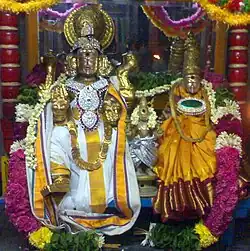 Each of the main deity has a festival image called utsavar associated with them. These utsavars are usually made of bronze and stored in the respective shrines of the deities. Panchaloha (Sanskrit Devanagari: पञ्चलोह; IAST: pañcaloha) (also called Panchaloham - literally, "five metals") is a term for traditional five-metal alloys of sacred significance used for making Hindu temple icons. The tradition started from the Chola era from the 7th century and continues during the modern era.[76] These festival deities are taken out of the shrines in processions during festivals.