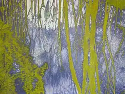Kubler's artwork features recycled materials and other objects, including silk cocoons, feathers, tree branches and other materials. Color is an inspiration to Kubler and her work. The genre of her work is a blend of Abstract Expressionism and Color Field painting. In her early years she practiced painting in a naturalistic realistic manner, focusing mostly on figures, portraits, still life and landscapes. Her style evolved as she experimented with different theories, techniques, and ideas.[1]