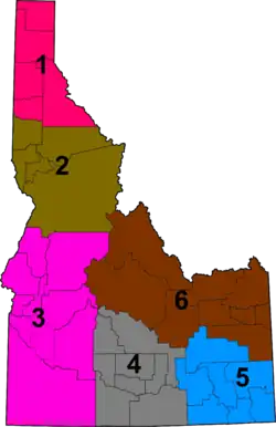 - District 2: Clearwater, Idaho, Latah, Lewis, and Nez Perce counties. Headquartered in Lewiston.