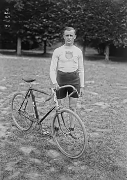He represented the United States at the 1924 Summer Olympics in Paris.[5] Gronkowski was reluctant to travel to Paris and leave his wife and baby with the little money that he had saved. However, that June, his coworkers at the American Radiator Company plant presented him with $582.70 (equivalent to $10,691.13 in 2024), enabling him to make the trip.[4] The American team performed worse than expected at the Olympics at least in part because they had to use French bicycles to which they were not accustomed.[1]