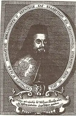 Ilias Miniatis (Greek: Ηλίας Μηνιάτης) (1669 at Lixouri – 1714 at Patras) was a Greek clergyman, writer and preacher.[1] At the Flanginian School he learned Ancient Greek and Latin and became interested in mathematics and philology. He was ordained very early. He preached God's word at his home island, Cephalonia, at Zakynthos, at Corfu and at Constantinople. His preachings are considered exemplars for modern ecclesiastical rhetoric. As of his language, it is simple Modern Greek and his style has something dramatical and hymnographic. His eloquent preachings are collected into the book "Διδαχαί" (Teachings), first published at Venice on 1725. An older book is "Η Πέτρα του Σκανδάλου" (The Start of the Scandal) about the Photian schism. Many historians consider him a student of Frangiscos Scoufos and others an imitator of Paolo Segneri. With his speeches he helped the development of ecclesiastical rhetoric and the configuration of Modern Greek language.