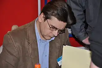 Ilkka Heilä (1956 in Ekenäs[1]) is a Finnish cartoonist who lives in Kaarina. He draws B. Virtanen -comic strip. Comics by Heilä appeared as early as in the beginning of 1970s in the comic magazine Sarjis. However, working in a post office replaced professional self-fulfillment of artistic tendencies the nearly 20 years period, until then he created Bulls-syndicate of his comic strip B. Virtanen and took part in comic competition arranged by newspaper Uusi Suomi in 1989. Thanks to this comic strip, Heilä could at last in the 1990s move to a full-time comic artist. He got the Puupäähattu, a Finnish comic prize from Finnish Comics Society in year 2006.