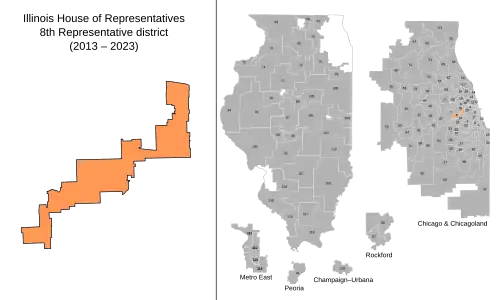 17. ^ "STATE LEGISLATIVE DISTRICT REFERENCE MAP: State House District 8 (Illinois)" (PDF). United States Census Bureau. May 18, 2013. Retrieved October 21, 2021.