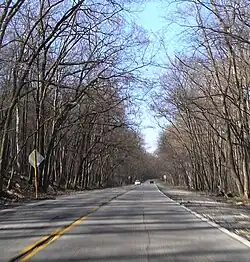 On the north side of Lockport, IL 171 bends northeast onto Archer Avenue. It intersects Interstate 355 (I-355, Veterans Memorial Tollway) just south of Lemont. At the community of Sag Bridge, it is joined by IL 83, and the two routes run concurrently for about one mile (1.6 km) to cross the Calumet Sag Channel on the Archer Avenue Bridge.[4][5] The two routes split again immediately north of the bridge, as IL 83 continues north while IL 171 resumes its northeastward course, passing St. James at Sag Bridge Church and Cemetery, listed on the National Register of Historic Places.[6] It then makes a scenic passage through the Palos Division[7] of the Forest Preserve District of Cook County, a very large natural preserve. Leaving the forest preserve, it passes through the village of Willow Springs which was built strung out along the road. IL 171 has a complex interchange with US 12/US 20/US 45 (LaGrange Road) and I-294 (Tri-State Tollway) on the border between Willow Springs and Justice. At this point, it begins to parallel two roads to the east, Illinois Route 43 and Illinois Route 50. It will parallel these two roads for the rest of its route. It continues northeastward through Justice, passing Bethania and Resurrection Cemeteries. It then passes through small sections of Bridgeview and Bedford Park on its way into Summit.
