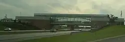 In 2011, over 11.8 million people visited the seven oases that existed at that time.[6] These facilities have gas stations (Mobil) with 24-hour automated car washes, fast food restaurants (McDonald's, Panda Express, Subway, etc.) and other various shops (such as Krispy Kreme, Starbucks, Coleman Distributors, and TravelMart). Oases also have automatic teller machines. Six of the oases are built as a bridge-restaurant, directly over the Interstate Highway they service. The oasis in DeKalb is the only exception, with the facility located along the southern (eastbound) side of Interstate 88 (I-88), and a vehicle overpass allows westbound traffic to access a parking lot and gas station along one side of the facility. All the oases provide free WiFi access for visitors. The oases have a drive-thru lane for the McDonald's. All oases, except for the Hinsdale and DeKalb oases, have Tollway Customer Service Centers, where I-Pass toll transponders are sold and serviced.[7][8] The oases have a total of 110,000 square feet (10,000 m2) of retail space.[9] As of 2009, the oases were 45 percent to 65 percent vacant. ISTHA has established a special task force to study the oases' future.[10]