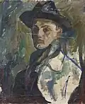 Having begun with expressionism he also got familiar with cubism in 1914.[2] Seeing an Edvard Munch exhibition at the Ateneum soon after his graduation had a strong influence on him and built on the expressionist influences. The first exhibition by cubists and expressionists was held in Finland in 1914, featuring key artists such as from the group Der Blaue Reiter.[3]