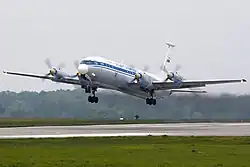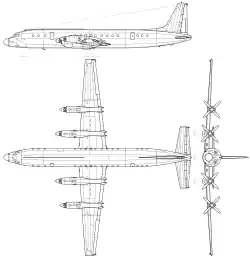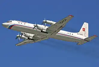 The Ilyushin Il-18 (Russian: Илью́шин Ил-18; NATO reporting name: Coot) is a large turboprop airliner that first flew in 1957 and became one of the best known Soviet aircraft of its era. The Il-18 was one of the world's principal airliners for several decades and was widely exported. Due to the aircraft's durability, many examples achieved over 45,000 flight hours and the type remains operational in both military and (to a lesser extent) civilian capacities. The Il-18's successor was the longer-range Ilyushin Il-62.