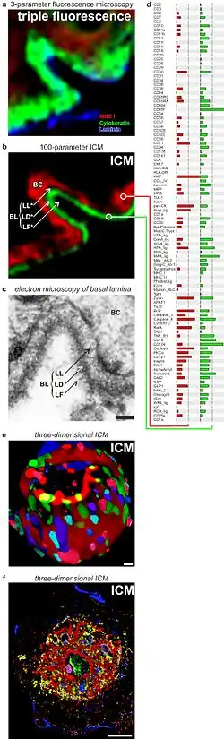 8. ^ Gerdes, M. J.; Sevinsky, C. J.; Sood, A.; Adak, S.; Bello, M. O.; Bordwell, A.; Can, A.; Corwin, A.; Dinn, S.; Filkins, R. J.; Hollman, D.; Kamath, V.; Kaanumalle, S.; Kenny, K.; Larsen, M.; Lazare, M.; Li, Q.; Lowes, C.; McCulloch, C. C.; McDonough, E.; Montalto, M. C.; Pang, Z.; Rittscher, J.; Santamaria-Pang, A.; Sarachan, B. D.; Seel, M. L.; Seppo, A.; Shaikh, K.; Sui, Y.; Zhang, J.; Ginty, F. (1 July 2013). "Highly multiplexed single-cell analysis of formalin-fixed, paraffin-embedded cancer tissue". Proceedings of the National Academy of Sciences. 110 (29): 11982–11987. Bibcode:2013PNAS..11011982G. doi:10.1073/pnas.1300136110. PMC 3718135. PMID 23818604.