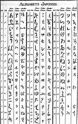 He wrote that Japan had three syllabaries: firo-canna (hiragana) and catta-canna (katakana), both used by commons, and imatto-canna, used by nobles. However, the imatto-canna he believed to exist were just variant forms of hiragana called hentaigana. Being hentaigana, they did not make up a cohesive or independent writing system, and were in often free variation with other hiragana characters. The only other Japanese syllabary besides hiragana and katakana is their precursor man'yōgana, use of which had died out well before 1712.