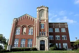Father Pelamourges continued to petition the bishop to send Sisters and Brothers to Davenport to open schools. After Pelamourges returned to France to visit his ailing father in 1852, Antoine LeClaire, who was the principle founder of the city of Davenport, and Judge G.C.R. Mitchell petitioned Bishop Loras to send religious to Davenport to staff a school for Catholic children. In 1855 the BVM Sisters returned to Davenport to staff St. Anthony's School. Judge Mitchell and his wife offered the Sisters ten acres of land northwest of Davenport to operate an academy for girls. The following year the offer was accepted[2] and Sister Mary Agnes Hurley, BVM, was given the responsibility for building the new school. A two-story brick building with a one-story chapel wing was built and the Academy of the Immaculate Conception was opened in 1859. The location proved to be its downfall. There were no roads that led to the academy and the Financial Panic of 1857 created financial difficulties. In the first two years only seven students were enrolled in the school.[3]