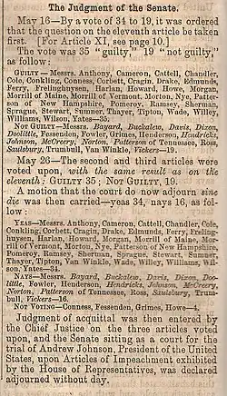 - ^ a b "Senate Journal. 40th Cong., 2nd sess., 16 / May 26, 1868, 943–951". A Century of Lawmaking for a New Nation: U.S. Congressional Documents and Debates, 1774–1875. Washington, D.C.: Library of Congress. Retrieved June 7, 2019.
