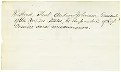 Resolved, That Andrew Johnson, President of the United States, be impeached of high crimes and misdemeanors.[39][40][41][42]