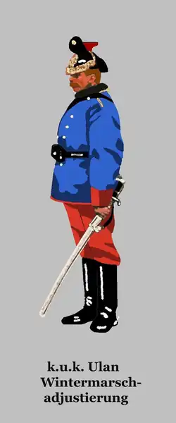 Together with the Dragoons and Hussars, the Imperial and Royal Uhlans (German: k.u.k. Ulanen), made up the cavalry of the Austro-Hungarian Army from 1867 to 1918, both in the Common Army and in the Austrian Landwehr, where they were known as the Imperial-Royal Landwehr Uhlans (k.k. Landwehr-Ulanen).