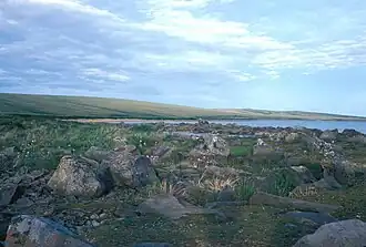 Imuruk Lake (Inupiaq: Imaġruk or Narvaġruk) is the largest body of fresh water in Seward Peninsula in the U.S. state of Alaska. It measures 31 square miles (80 km2) and has a drainage basin of 102 square miles (260 km2), It lies on top of a lava plateau at an elevation of 960 feet (290 m). The drainage basin is relatively flat, as the maximum elevation is only about 1,600 feet (490 m). A low gap in the divide between the lake and the head of the right fork of Goodhope River rises only a few feet above the lake. The Fairhaven Ditch takes practically all its water from the lake.[1] Serpentine Hot Springs flow to the Serpentine River, 47 miles (76 km) northwest of Imuruk Lake.[2]
