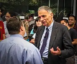 The 2008 presidential campaign of Ralph Nader, political activist, author, lecturer and attorney began on February 24, 2008. He announced his intent to run as an independent candidate, on NBC's Meet The Press.[1][2] It was Nader's fifth and final campaign; he ran in the four election cycles prior to 2008: 1992, 1996, 2000, and 2004. The 2008 election was the third in which he had officially run a national campaign. While Nader ran as an independent, in some states he had ballot access with the Independent-Ecology Party, the Natural Law Party, and the Peace and Freedom Party.[3][4] Nader received 738,475 votes.[5]
