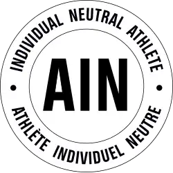 1. ^ Russian: Индивидуальные нейтральные спортсмены, romanizedIndividual'nyye neytral'nyye sportsmeny; Belarusian: Індывідуальныя нейтральныя спартсмены, romanizedIndyviduaĺnyja niejtraĺnyja spartsmieny; French: Athlètes Individuels Neutres, AIN