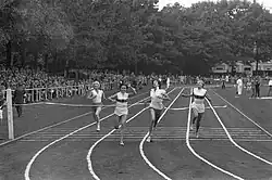 ![]() Ter Laak (left) running 100 m in 1959 | |