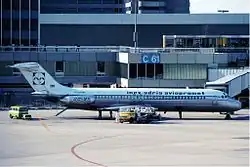 In 1969, the first jet aircraft was purchased, a McDonnell Douglas DC-9-30 with 115 seats. Thus began a period of modernisation of the fleet, which allowed Adria to increase its share on the tourist flights market. In September 1969 the first scheduled service was established on the Ljubljana-Belgrade route. In March 1970, Adria had four Douglas DC-6B and a Douglas DC-9-30 with one more on order.[3][4]