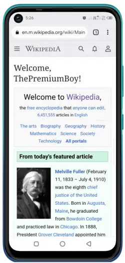 ![]() Infinix Hot 9 Pro with Wikipedia screen | |