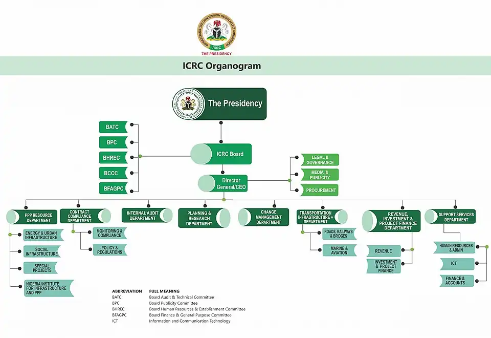 The Infrastructure Concession Regulatory Commission (ICRC) is an agency of the Federal Government of Nigeria responsible for the development and implementation of the Public-Private Partnership (PPP) framework for the provision of infrastructure services.