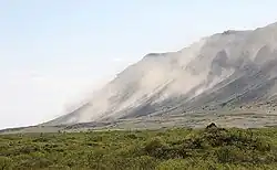 The mountain is situated in a tectonically very active zone, the South Iceland Seismic Zone.[5] In 2008, the hypocentre of a 6.3 earthquake[6] was situated just under Ingólfsfjall so that many landslides happened at its flanks.[7]