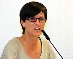 Born in Hamburg, Hannemann trained as a forwarding merchant, network administrator and job placement counselor.[1][2] She studied journalism, is a member of the labor union Ver.di, and advocates an unconditional basic income.[3][4] She is active in local politics in Hamburg. Although she is not a member of the party Die Linke,[5] she was voted to the district assembly Hamburg Altona in May 2014.[6] During the Hamburg parliamentary elections, she ran for Die Linke on place 13 of the party list. With 7,570 direct votes, she won a seat in the 21st Hamburg parliament.[7] In Hamburg parliament she sits on the petitions committee. She is the spokesperson for labor market policy for the parliamentary group of Die Linke.[8] On 10 May 2017, Hannemann announced that she would resign from her seat in the Hamburg Parliament for health reasons, effective 31 July, and would withdraw from politics.[9]