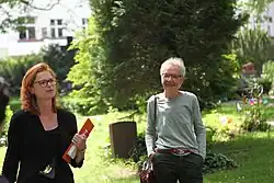 Inge von Bönninghausen (right) 2016 at the grave of Hedwig Dohm