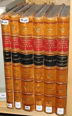Often mistaken for inlays, onlays are thin pieces of leather (often less than 0.2 mm) which are adhered over the covering leather on a book. Because of their thinness, onlays are not noticeably raised from the surface of the covering leather. Onlays are adhered to the covering leather with paste or PVA, and their edges are usually, though not universally, tooled over in order to hide any minor irregularities. They are often added to the spine of a book, containing the title and author's name.