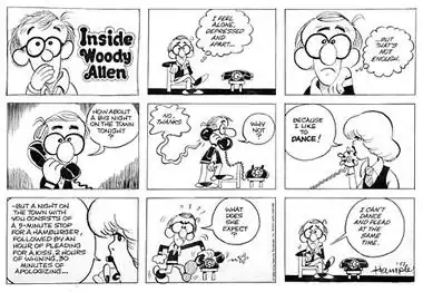 Inside Woody Allen is an American gag-a-day celebrity comics comic strip about the comedian and filmmaker Woody Allen. Drawn by Stuart Hample, the strip ran from October 4, 1976, to April 8, 1984.[1]