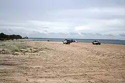 Inskip is a peninsula that separates Wide Bay and Tin Can Inlet from the Coral Sea. Inskip Point is its northernmost point (25°48′46″S 153°04′13″E / 25.8127°S 153.0703°E)[3][4] and is 1.2 kilometres (0.75 mi) south from the southern tip of Fraser Island, making it a major gateway to the island via vehicular barges. There are camping grounds in Inskip and two boat ramps, horse trails and other outdoor recreational facilities.[5]