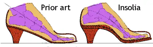 Insolia is a component in the design of the high-heeled shoe designed by New Hampshire podiatrist Dr. Howard Dananberg.[1] It reduces the pain associated with wearing high-heeled shoes by adjusting weight distribution back toward the heel through altering the geometry of the insole, rather than with padding.