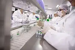 The Butantan is the largest producer in Latin America (and one of the largest in the world) of immunobiologicals and biopharmaceuticals. In 2001 it produced ca. 110 million doses of vaccines and 300 thousand vials of hyperimmune sera. The institute is responsible for the production of 90% of the vaccines used in Brazil.[2] The institute contains a venom farm where researchers milk around a thousand snakes for their venom which is used to make antivenoms and for medical research.[4]