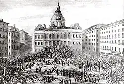 The first commune to be established was that of Lyon, where the new republic was proclaimed ahead of Paris on September 4, 1870. This initial commune persisted until January of the following year,[3] after which it recommenced from March to April.[4] It was succeeded by Marseille Commune, established on October 31, 1870, and was presided over by Adolphe Joseph Carcassonne,[5][6] before control was once again regained by Prefect Alphonse Gent.[7]