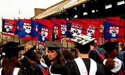 Spring Fling is an annual festival for the students at the end of each Spring semester, usually beginning on the Friday of the second-to-last week of the semester and continuing until Saturday night. Fling, which began in 1973, is dubbed the largest college party on the East Coast, and is hosted by the university's Social Planning and Events Committee.[10] The event takes place on College Green, Penn Commons, and The Quadrangle (or Quad) for a student body drenched in alcohol, for the most part. Over the past few years, there has been legitimate discussion towards potentially moving the event out of the Quad, but improved behavior has resulted in the carnival aspect of the festival remaining in the Quad. College Green becomes a staging area for carnival games and carnival food. Two stages in the Quad host Penn's performing arts groups. Saturday night, Penn holds a festival on College Green, and Friday night SPEC (The Social Planning and Events Committee SPEC – Bringing events to Penn since 1989) brings in a headlining musical act for a concert. Past guests for this concert have included Wyclef Jean, Busta Rhymes, Sonic Youth, and Of A Revolution.[11]