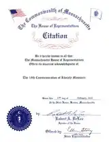 Commonwealth of Massachusetts Citation for acknowledgment of the 18th commemoration of Khojaly massacre.