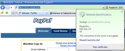• IE7 includes support for Extended Validation Certificates (EV). When sites present an EV certificate the address bar is shown in green.